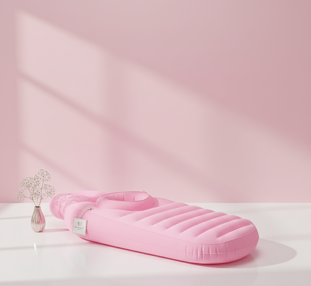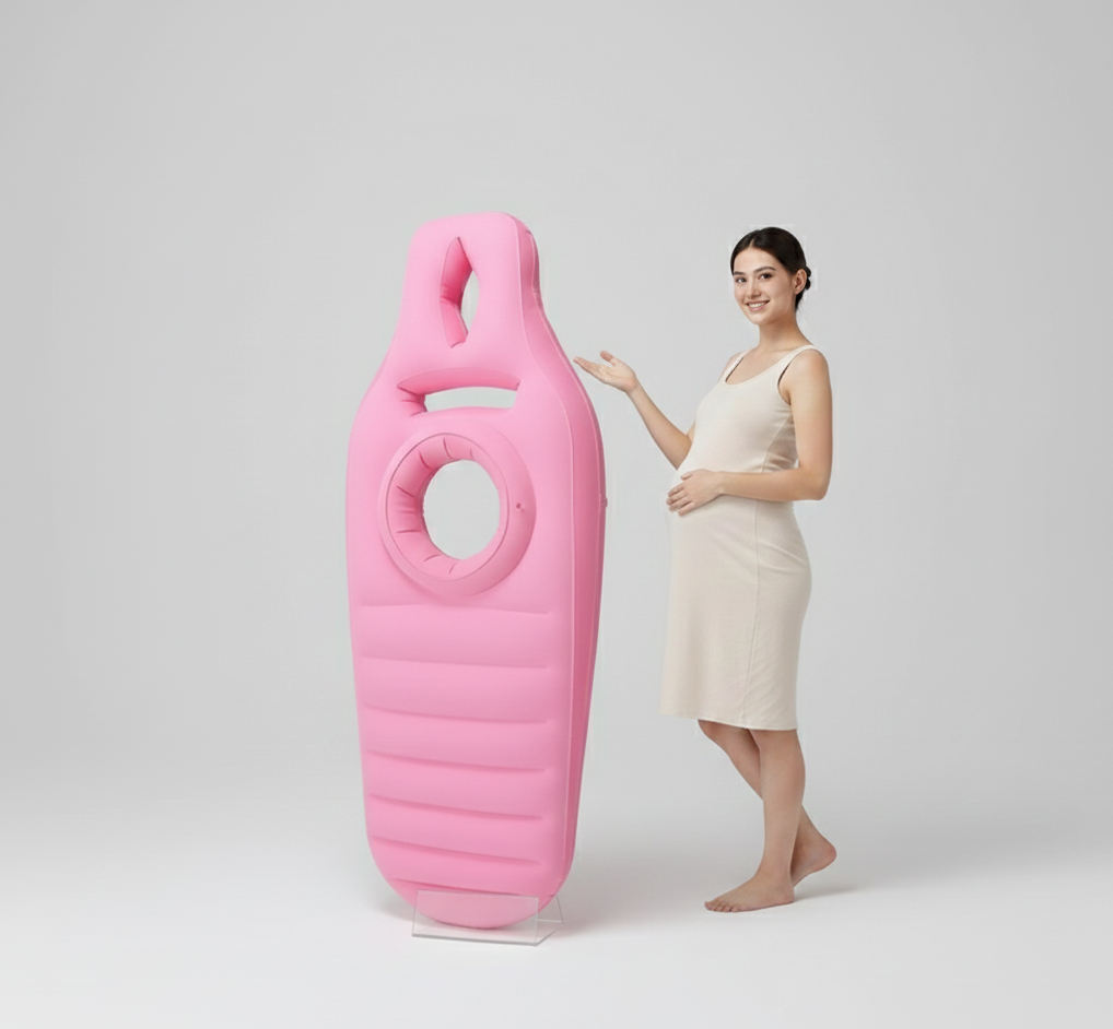 Viele Schwangere teilen in unseren Testimonials echte Bilder, wie sie das Kissen mit ganz normalen Pumpen aufgeblasen haben — das zeigt, wie einfach und flexibel es in der Anwendung ist.